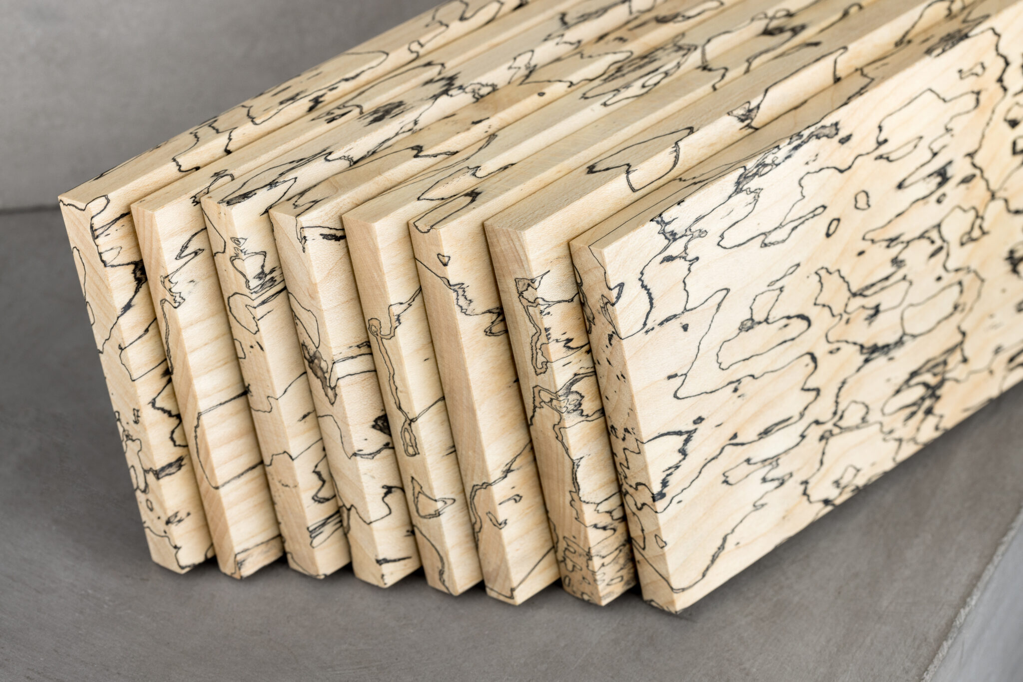Ein speziell gezüchteter Pilz wächst in das Holz ein und bildet dabei feine Linien im Inneren des Materials. Diese wachsen dreidimensional, wodurch ein lebendiges, unnachahmliches Muster entsteht.